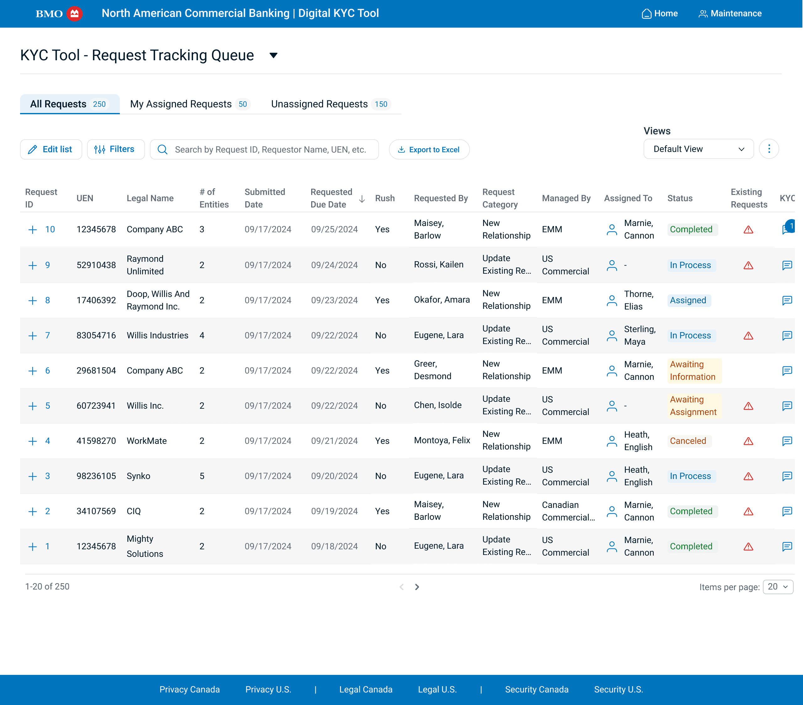 At BMO, these submissions were managed through a fragmented mix of emails, spreadsheets, and legacy PowerApps, resulting in inconsistent data and expensive back-and-forth loops between bankers and analysts.